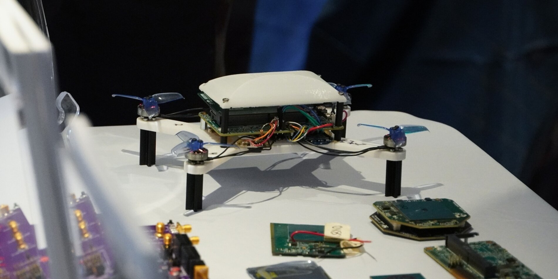 The Hub also highlighted the work of its workforce development partners at the University of California, Berkeley, who showcased a custom drone built on their RiskyBot open-source platform alongside student-designed silicon projects. The demonstrations illustrated a full silicon-to-systems pipeline, emphasizing the impact of hands-on microelectronics education and training.